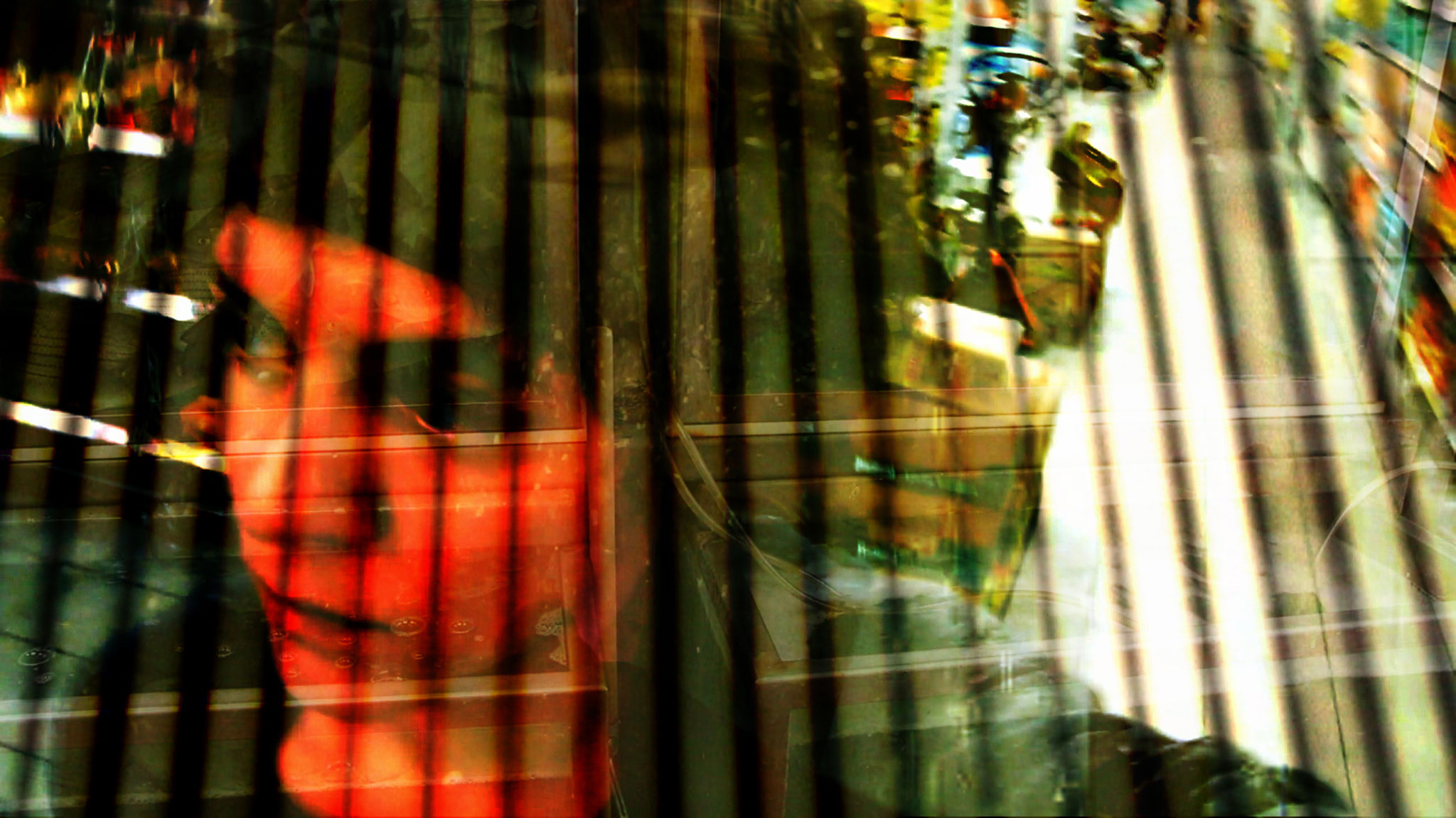 I move through different settings and through my movement I create my individual setting, defined by my own perception. The camera is set on a part of my body and becomes a reflection of my performance. The reality becomes relative, through the multiplied different videos which create a new image.Text: Hanna Schaich